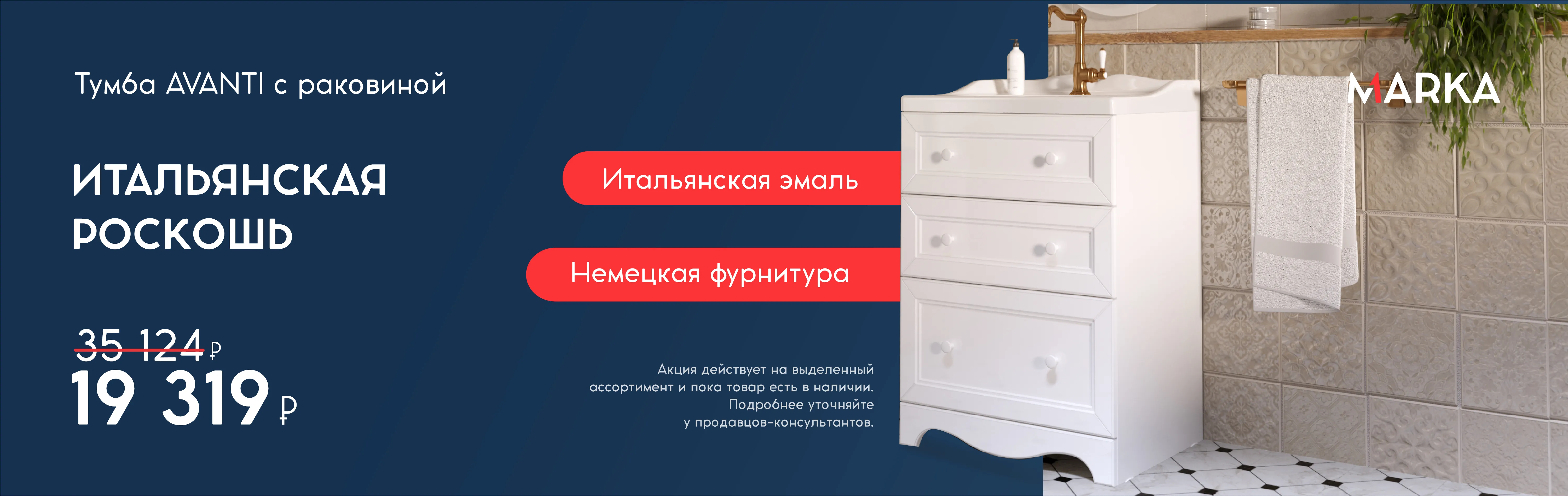 "MARKA ванны & мебель" – официальный интернет-магазин производителя акриловых ванн и мебели для ванной 1Marka, Marka One, Aima. Наша розничная сеть представлена в 20 городах России, но доставляем сантехнику по всей стране (зачастую совершенно бесплатно).