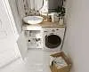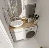 Столешница под стиральную машину, которая позволяет с максимальным комфортом и удобством организовать пространство даже в небольшой ванной комнате. Исполненная в универсальной и одновременно стильной прямоугольной форме, она включает в себя место под раковину и функциональную зону для размещения косметики, личных принадлежностей и аксессуаров. Материалом исполнения столешницы является МДФ, а ее дополнительная защита от воздействия влаги и внешних повреждений обеспечивается покрытием корпуса пленкой ПВХ.Характеристики: