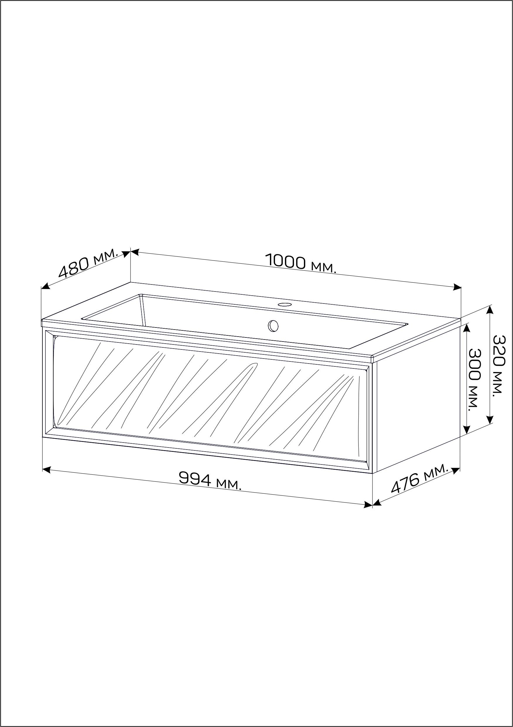 Тумба под раковину Glace 100П (994х300х476) 1я белый (верх)
