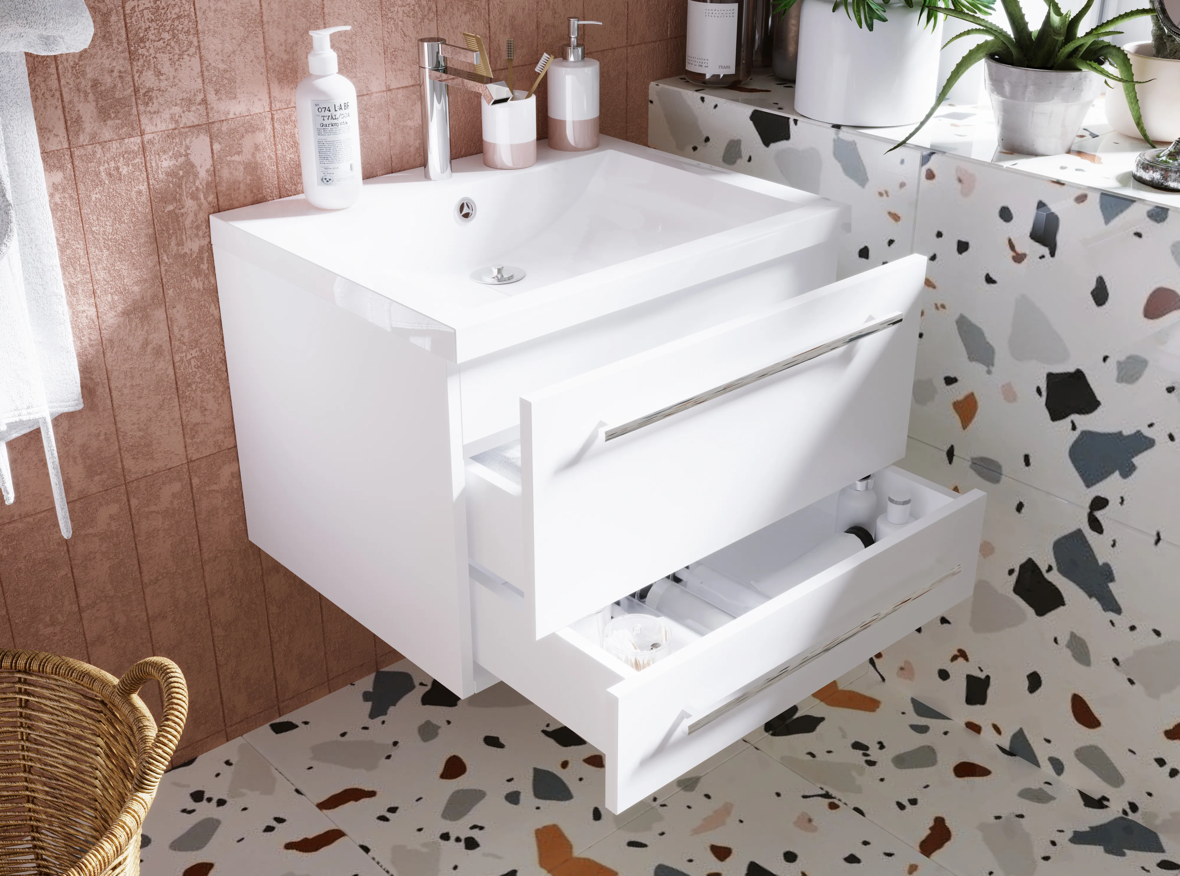 9 180 Р Тумба под раковину ТЕРА/Tera 55Н 1д. белый глянец