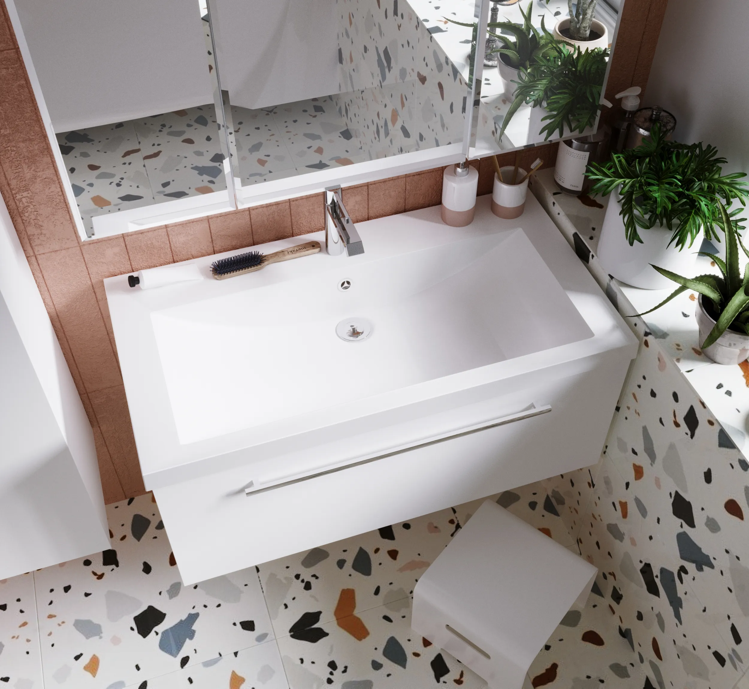 Тумба под раковину Соната 90П 1в.я. белый глянец