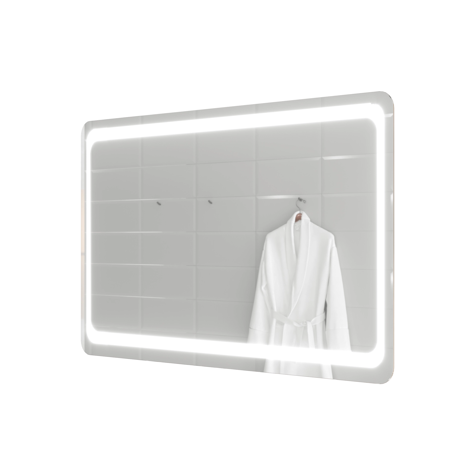 Зеркало, выполненное на стыке классических и современных решений в дизайне аксессуаров. Оно имеет традиционную форму прямоугольника с мягкими краями, которая подчеркивается дублирующим ее рисунком, выполненным методом художественного матирования. Мягкий свет, излучаемый по всему периметру зеркала, не только делает более удобным его ежедневное использование, но и позволяет создавать в ванной комнате особенно уютную атмосферу. Для изготовления зеркала используется французское или бельгийское зеркальное полотно на основе серебряной амальгамы, что значительно увеличивает срок службы модели.