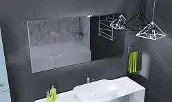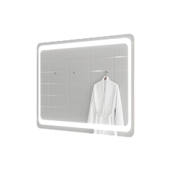 Зеркало, дизайн которого создан на стыке классических и современных решений в оформлении аксессуаров для ванной комнаты. Оно имеет традиционную форму прямоугольника с мягкими краями, которая подчеркивается при помощи лаконичного рисунка, выполненного методом художественного матирования. Светодиодная подсветка по всему периметру делает контуры зеркала еще более мягкими и обтекаемыми, что помогает создать в ванной комнате особенно уютную и комфортную атмосферу. Среди других преимуществ модели можно выделить ее изготовление из французского или бельгийского зеркального полотна на основе серебряной амальгамы.